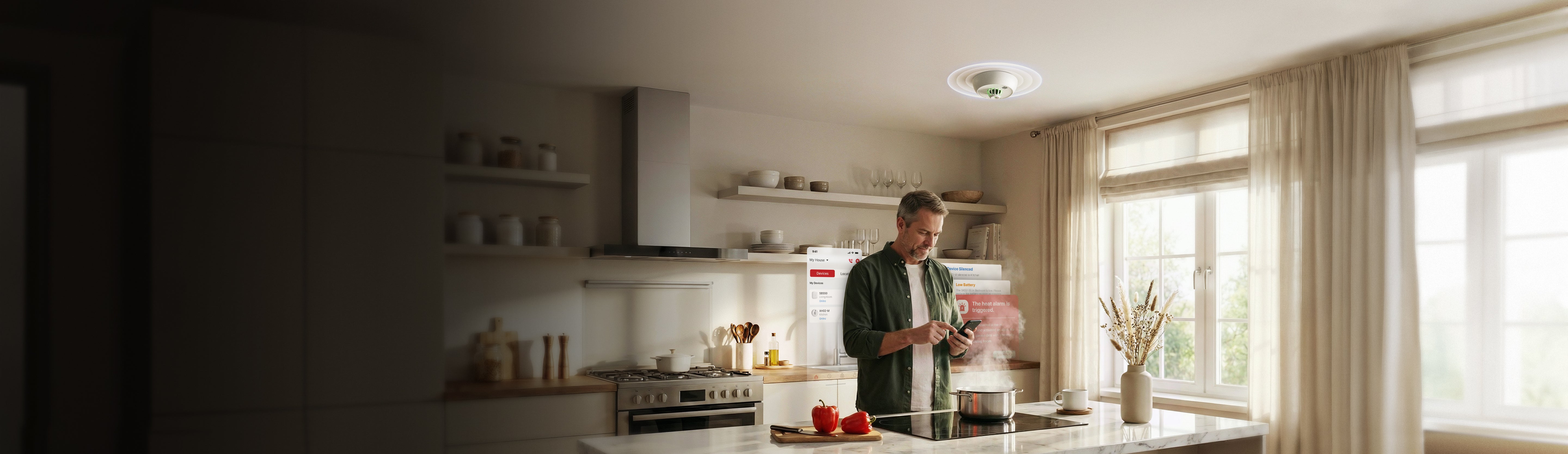 Ekstra tips: Kjøp en varmevarsler til garasje, kjøkken og bad for å unngå falske alarmer. Cavius sine varmevarslere kan kobles sammen med røykvarslerne.